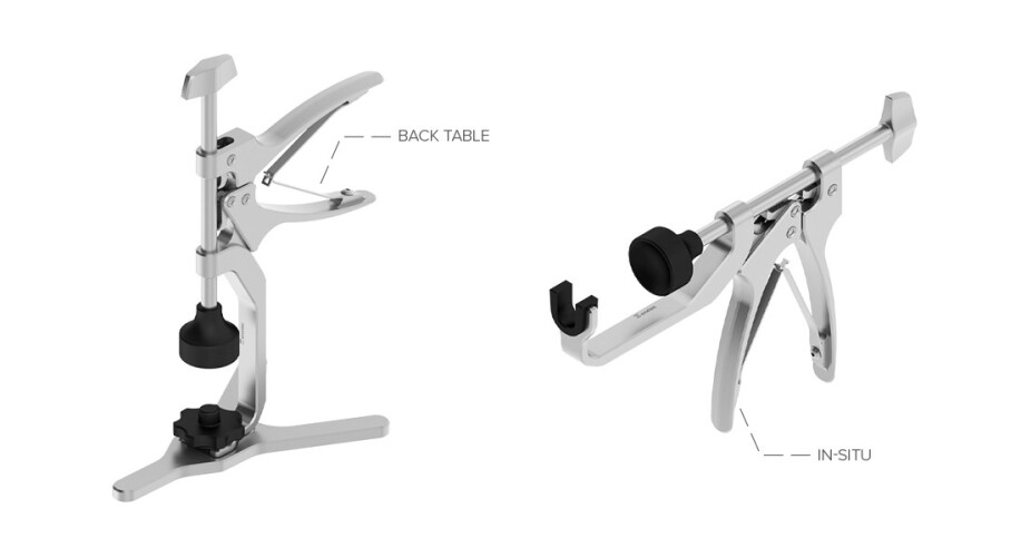 Designed with ergonomic, easily compressible handles and a removable base, it seamlessly transitions from the back table to in-situ use.